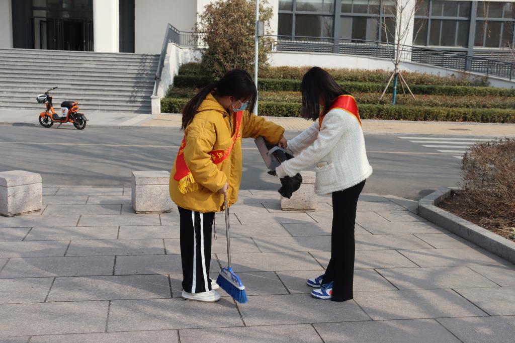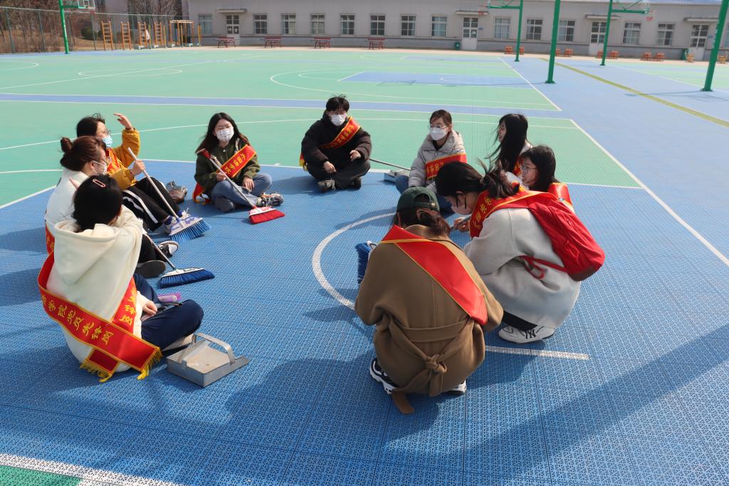 志愿服务活动中,身披红绶带的员工党员充分发挥“不怕苦,不怕累,不怕脏”的精神,拿着扫帚、簸箕、抹布等工具穿梭在校园的各个角落,对校园路面、卫生死角、绿化带进行集中清理,并对校园设施进行了擦拭清洁。大家有序分工、团结协作,捡拾塑料袋、烟头等垃圾,擦拭垃圾桶及健身器材,清理张贴的小广告,打扫操场、教学楼外等处的卫生死角。他们还将校园的共享单车摆放整齐,并呼吁同学们杜绝乱丢垃圾、随意停放车辆等不文明行为。操场上、篮球场里、教学楼外都能看到党员同志们的身影,他们所及之处,皆为“净土”,他们用实际行动一点一滴美化校园环境,建设美丽校园。活动结束后,党员同志们进行了活动总结,大家各抒己见,交流此次活动的心得感悟。
