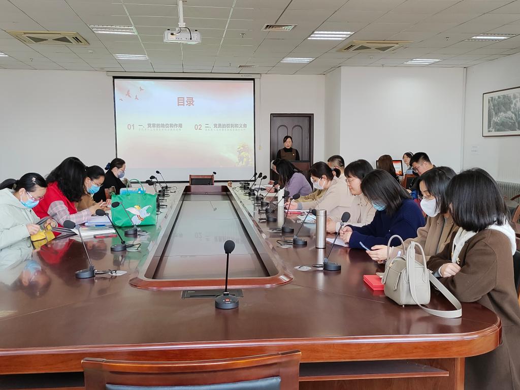 会议伊始,教师党员程美丽带领全体教师党员从党章的地位和作用及党员的权利和义务两个方面进行党章学习。党的章程是党的根本大法,是立党之本。通过不断深入学习党章和党规才能做到将其内化于⼼、外化于⾏,才能强化理想信念,保持政治定⼒,铸牢“党性之魂”。对此,孟范英书记强调,作为教师党员,要认真学习党章,进一步增强自身的政治意识、大局意识、核心意识、看齐意识,积极发挥教师党员的先锋模范作用。