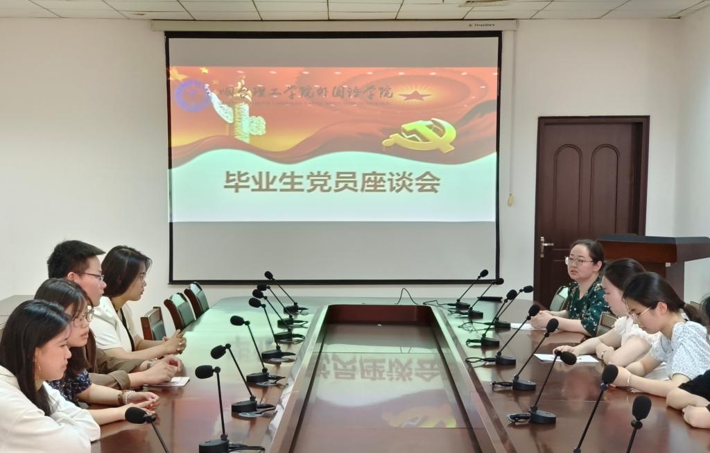 6月15日,太阳成集团tyc234cc于二教六楼会议室召开毕业生党员座谈会,会议由党总支副书记赵蓓主持,所有毕业生党员到场参加。