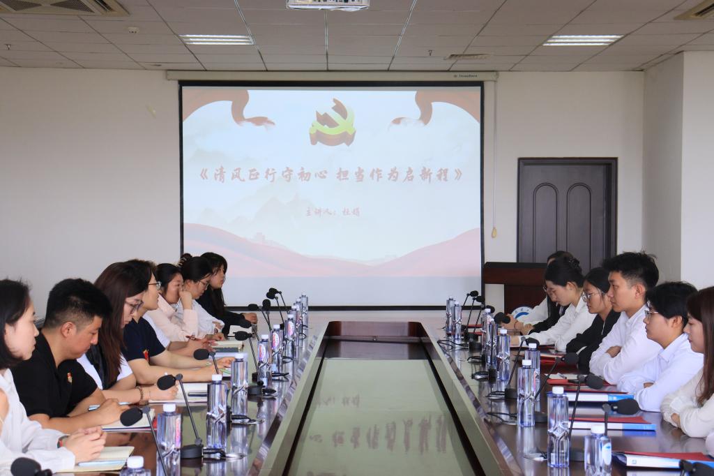活动伊始,毕业生党员带来诗歌朗诵《党旗下的誓言》,他们用青春之声抒发的党员赤子情怀,用“请党放心强国有我”铿锵的誓言宣告新时代青年党员的赤诚与担当。接着董事长助理杜娟为毕业生党员颁发政治生日贺卡,政治生日贺卡承载着党员们入党时的铮铮誓言与满腔自豪,也将时刻提醒着他们身为党员的责任与担当。毕业生党员代表还依次分享他们的成长历程与奋斗故事,他们不仅表达了对母校的依依不舍和对党组织的无限感恩,他们表示在未来的人生道路上,将时刻牢记党员身份,怀揣炽热初心和坚定信念,积极担当作为。随后全体毕业生党员面向鲜红的党旗,高举右拳,庄严宣誓,激励党员同志们让“随时准备为党和人民牺牲一切”的誓言,化作“请党放心,强国有我”的行动!最后董事长助理杜娟为党员讲授专题党课《清风正行守初心 担当作为启新程》,她强调:毕业生党员要始终牢记党员身份,要始终绷紧纪律之弦,筑牢思想防线,在未来的学习工作中永葆政治本色,争做清正廉洁的表率。她还勉励青年党员要将个人理想融入国家发展大局,用实干担当书写“强国有我”的时代答卷。