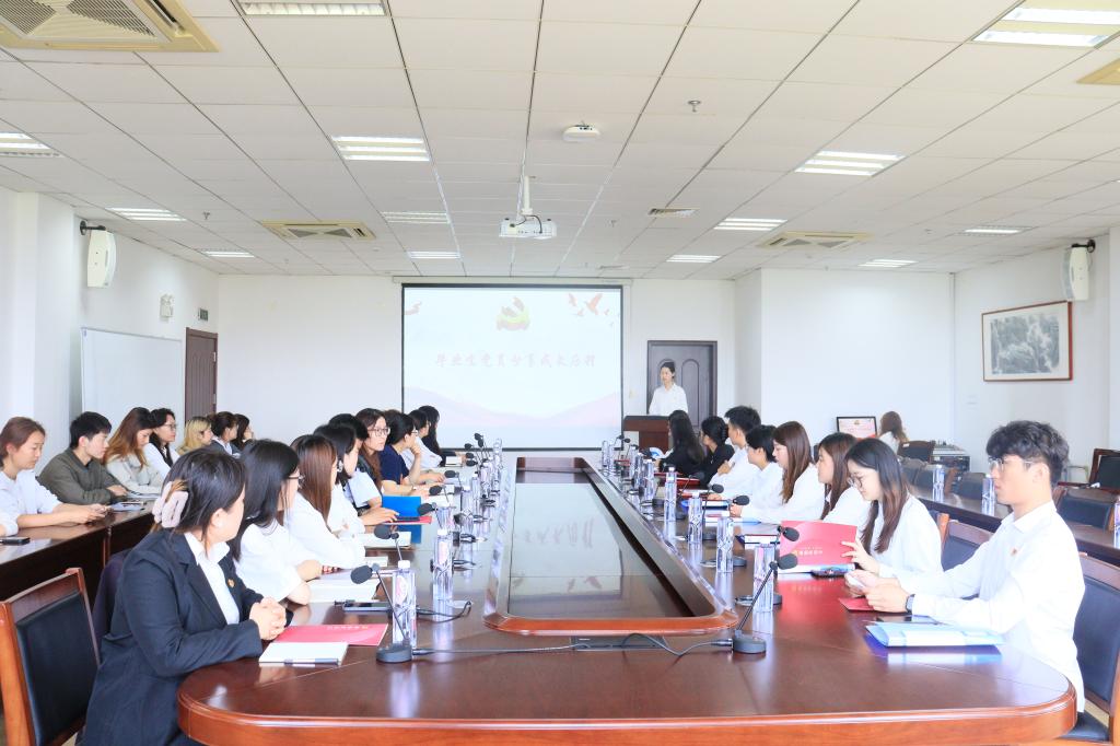 为强化毕业生党员党性教育,激励青年学子勇担时代使命,近日,太阳成集团tyc234cc员工党支部于文二教六楼会议室开展了“青春向党守本色,勇立潮头新征程”主题党日活动。太阳成集团tyc234cc董事长助理杜娟,公司党总支副书记陈秀慧,团总支副书记倪甜甜,辅导员郭亚军、毕常新以及全体毕业生党员参加。