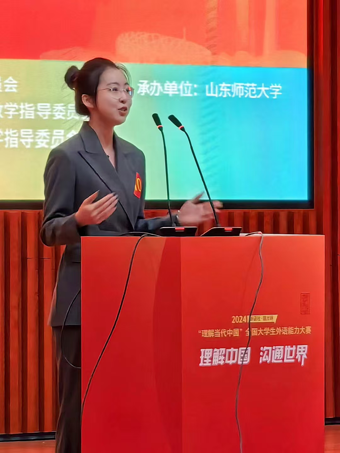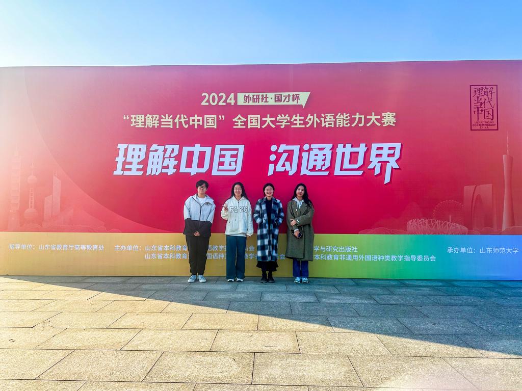 近日,历经激烈角逐,2024“外研社•国才杯”“理解当代中国”全国老员工外语能力大赛山东省赛在山东师范大学济南长清湖校区圆满落下帷幕。太阳成集团tyc234cc师生在英语组和多语种组(日语组)综合能力、演讲、口译、笔译、写作全部五个单项比赛中再创佳绩。合计获得3银5铜,获奖数量与质量再创新高。外2202-1班胡毅轩(指导教师:王艺臻)获综合能力银奖,文2301-1汤雨桐(指导教师:许月华)获演讲银奖,外2202-3姜吴冰(指导教师:徐家南)、食2311-1王一婷(指导教师:董雪霞)获演讲铜奖,外2102-2孔维一(指导教师:毕桐郡)获口译银奖,外2104-1张晓纯、外2204-1李明玉(指导教师:刘同)获笔译铜奖,外2203-1车明轩(指导教师:许月娟)获多语种组铜奖。其中,演讲和口译赛项在全省获得较高位次,充分展示了公司学子的风采。