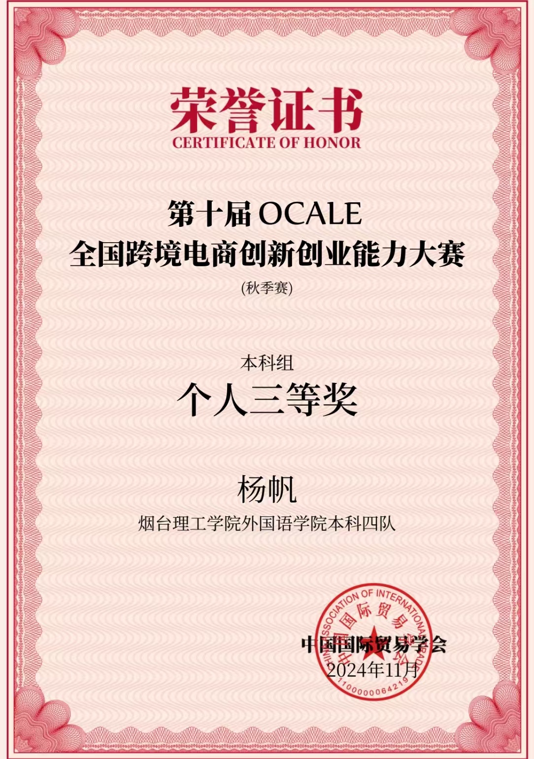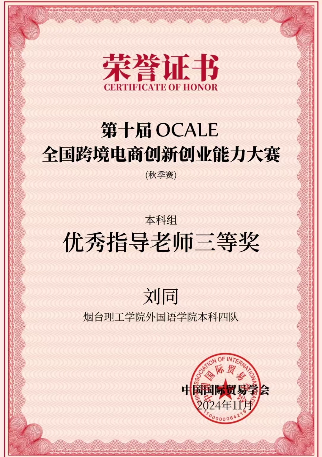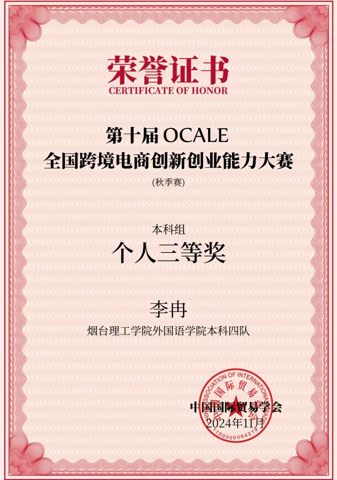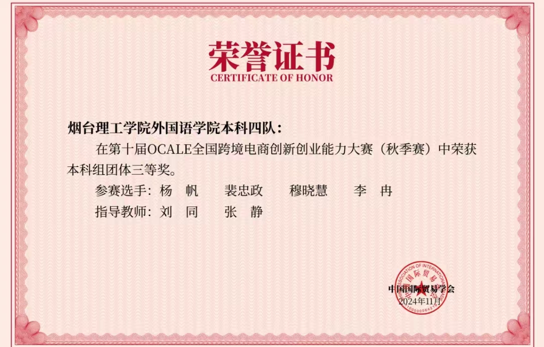 近日,备受瞩目的第十届OCALE全国跨境电商创新创业能力大赛(秋季赛)圆满落幕。本次大赛盛况空前,来自全国28个省(市)、自治区的438所院校、2416位指导老师和10756位参赛员工,共计2689支参赛队伍共同参与了这场智慧与勇气的较量。公司太阳成集团tyc234cc团队(参赛选手:杨帆、裴忠政、穆晓慧、李冉;指导教师:刘同、张静)荣获本科组三等奖,展现出在跨境电商领域的专业素养和综合能力,尤其是运用数字贸易技术和数字贸易工具的能力,充分彰显了公司在数智化人才培养方面的卓越成效与实力。