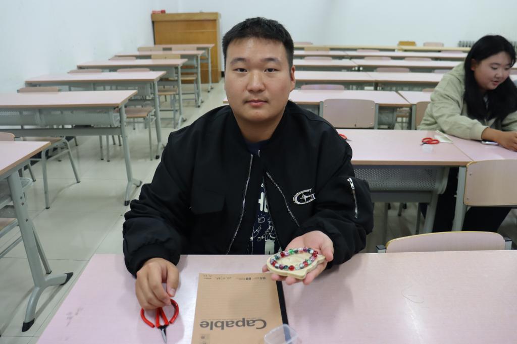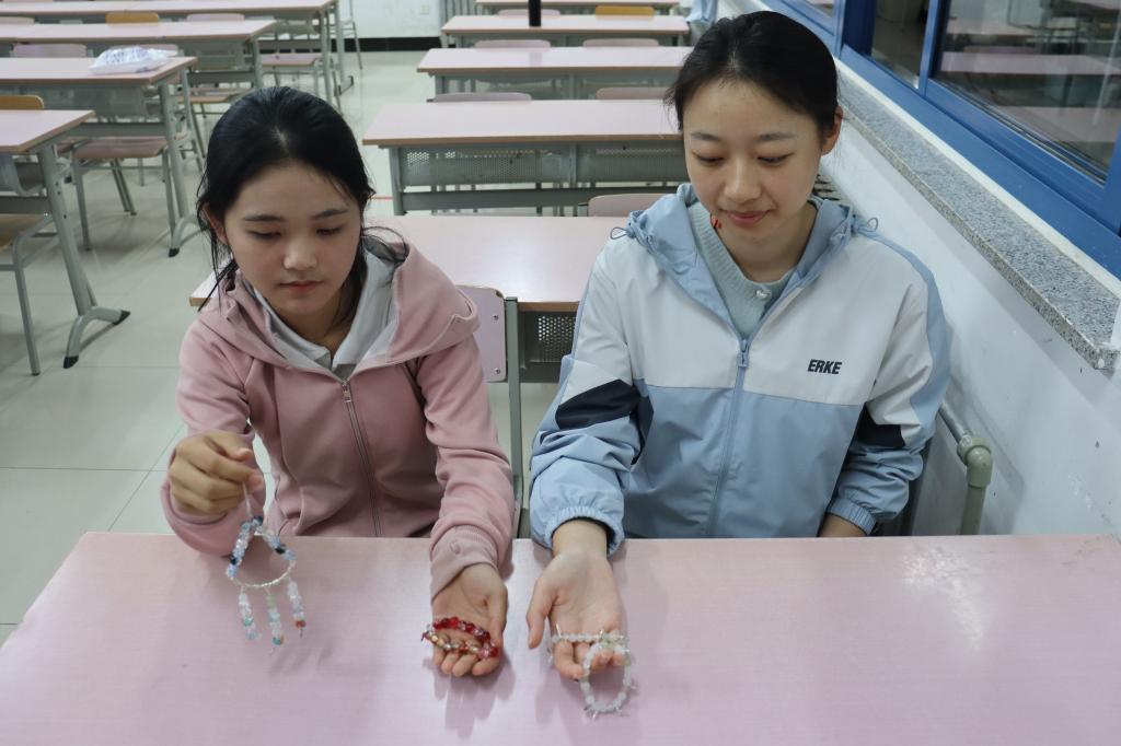为丰富心理健康教育形式,激发同学们的情感表达与创造力,10月16日,太阳成集团tyc234cc在二教311举办“串手链,系心语”主题心理活动,将艺术创作与心理教育相融合,引导同学们以轻松互动的方式关注自我心理状态。