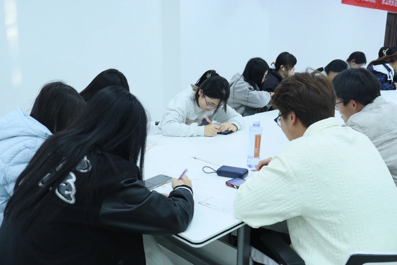 曲会长以“AI时代外语职业规划”为主题,结合自身丰富的从业与招聘经验,从简历优化、面试技巧、实习选择等实用技巧切入,生动解析了AI对语言类职业的影响、“外语+AI”跨界岗位类型、核心技能要求及学习路径,并通过真实案例辅助讲解,帮助同学们将职业目标转化为可落地的行动方案,同时指导同学们提前规避求职常见误区。随后,同学们首先以“盲盒讨论”的形式,梳理个人职业困惑与初步规划,在小组交流中碰撞思维火花;接着进入自由提问环节,同学们围绕自身职业发展诉求与理想方向,积极向专家及老师们请教,老师们耐心答疑解惑,为同学们调整职业计划、明晰发展道路提供了针对性指导。