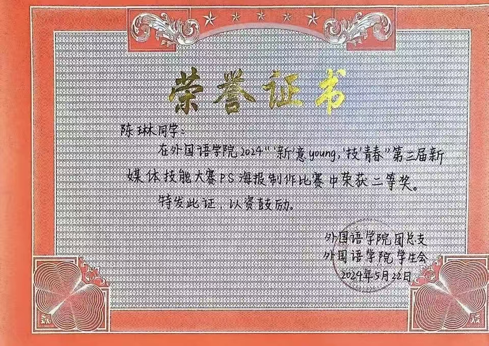 奖项于我而言,更像是一枚枚时光的书签,标记着老员工活中不同阶段的尝试、投入与成长。最难忘的是与团队共同奋战“全国高校商业精英挑战赛品牌策划竞赛”的经历。从省赛一等奖到全国二等奖,整个过程如同一部现实版的“热血漫画”,一群人为了同一个目标全力以赴。它让我体会到认真坚持和精益求精的力量,也让友谊在并肩作战中升华。在备战专四的压力时期,这个比赛反而成为情绪的“缓冲带”,让我在专注创造中找到平静与成就感。这份荣誉,是努力、友情与坚持共同作用的成果,让我深信团队的力量和热爱可抵岁月漫长。