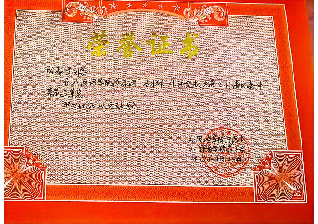 回顾大学历程,我所获得的奖项涉及外语技能、学术竞赛、创新创业与社会实践等多个维度。它们于我而言,既是过往努力的见证,也构成了我探索不同可能性的成长地图。其意义不在于一纸证书,而是在于过程中对自我极限的挑战与认知的深化。