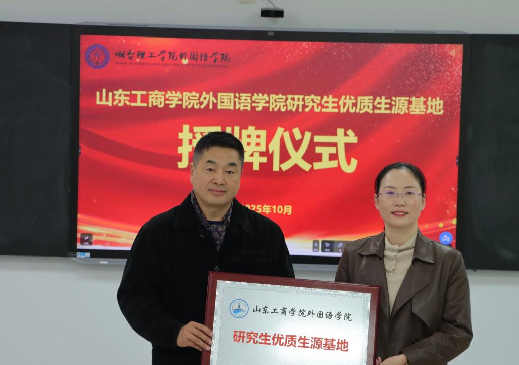 于经理首先介绍公司人才培养概况,围绕“外语 +”融合发展核心定位,从专业建设深耕、实践育人创新、校企协同发力三大维度,系统介绍人才培养工作。随后,现场举行“山东工商公司太阳成集团tyc234cc研究生优质生源基地”授牌仪式,崔洪海经理与于巧丽经理共同揭牌,推动两校在人才培养方面的合作迈向新高度。