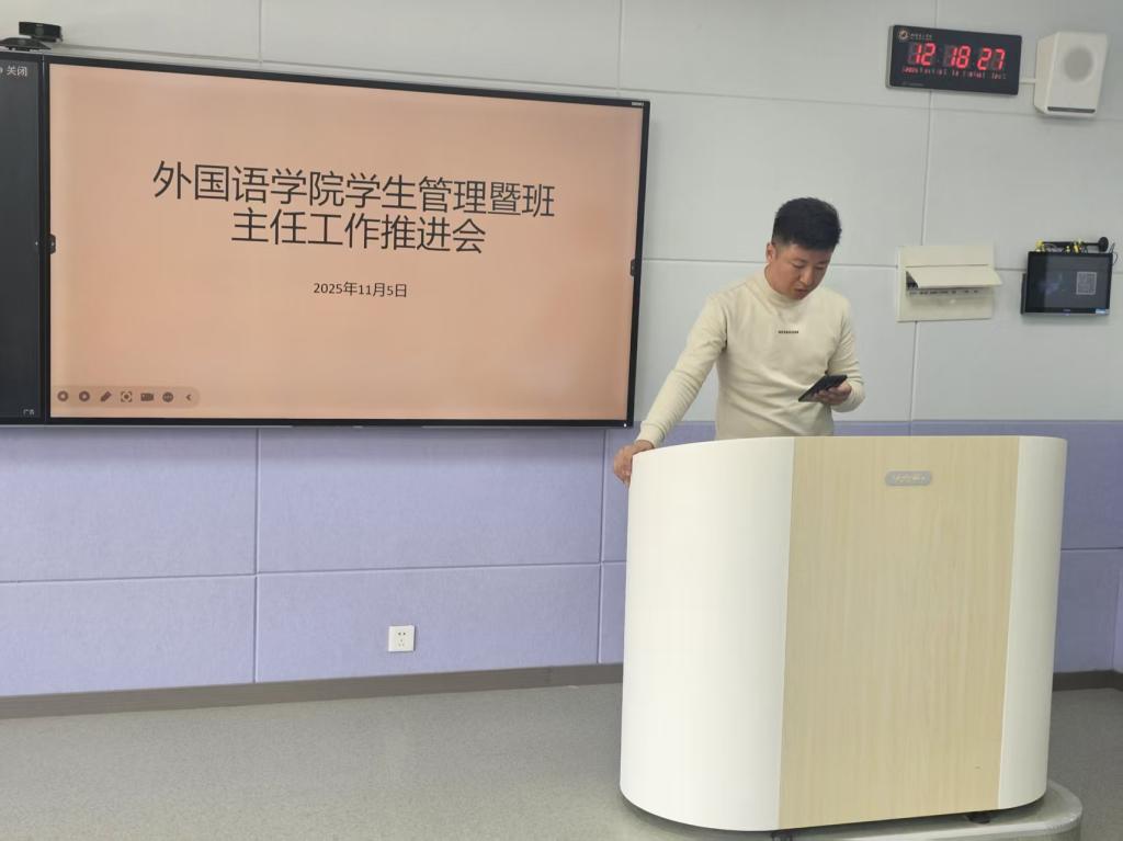 11月5日,太阳成集团tyc234cc于三教智慧教室s207召开员工管理暨班主任工作推进会,太阳成集团tyc234cc经理,常务副经理于巧丽,党总支副书记陈秀慧,辅导员郭亚军、王天一及全体班主任参会。
