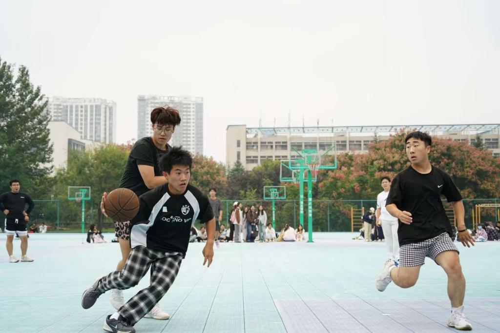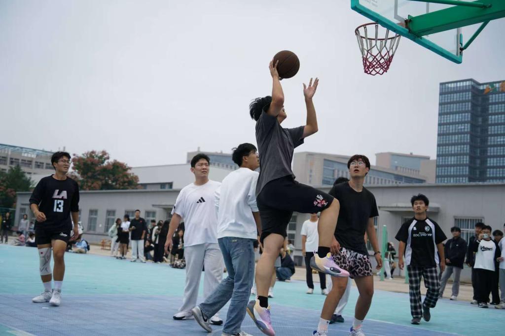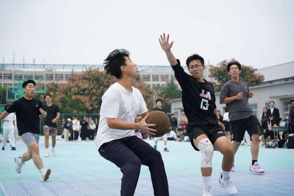 赛场上,老生队展现出娴熟的控球技巧与默契的战术配合;新生队则以充沛体力和积极拼抢态度,多次通过快速反击创造得分机会。球员们精准传球、果断投篮、严密防守,每一次精彩攻防都引发场边观赛同学的阵阵掌声与呐喊助威。赛后,双方围绕赛事细节交流,老生讲解技巧、新生虚心求教,“传帮带”的温暖场景成为赛场外另一道风景。