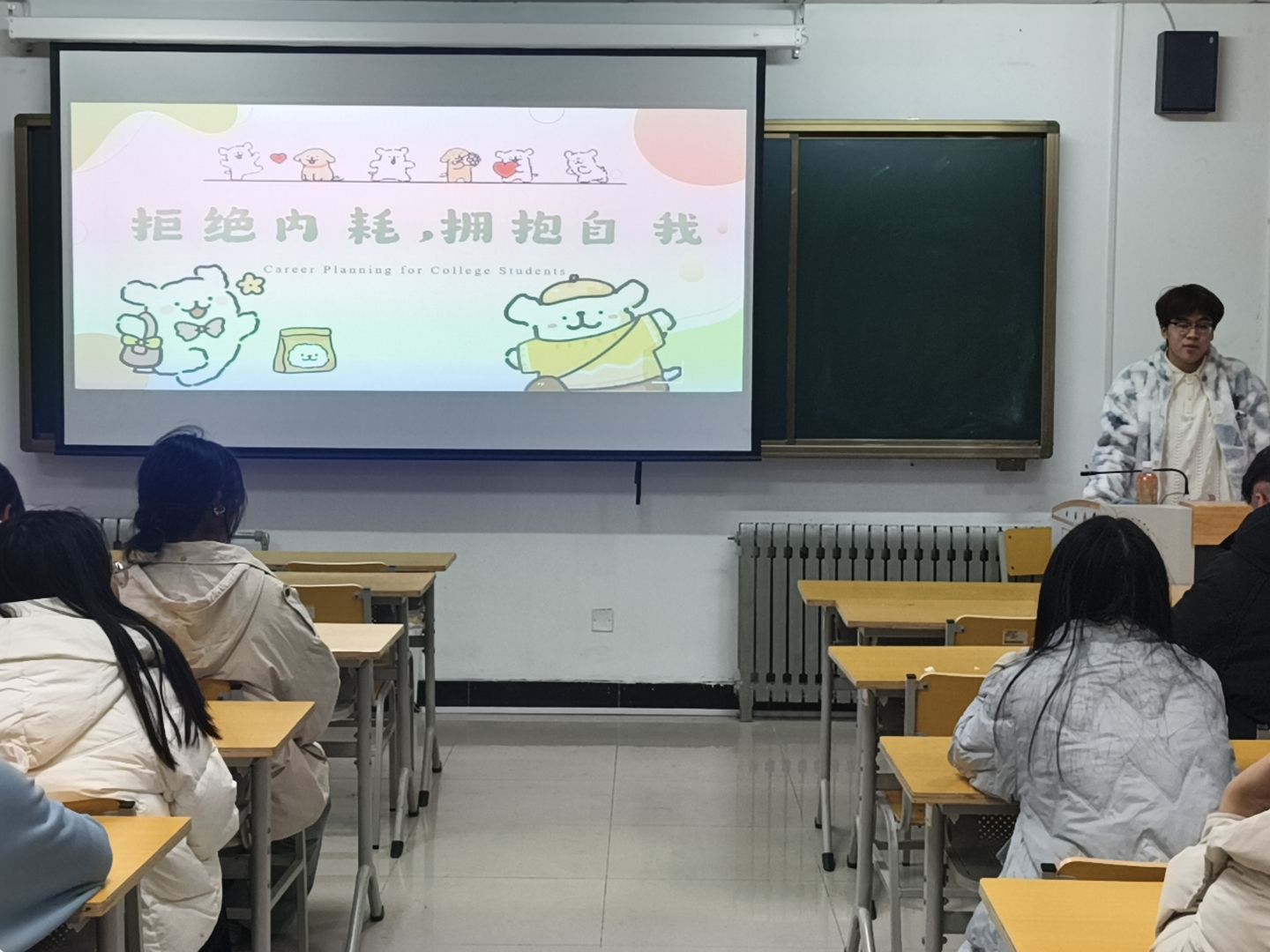 为帮助同学们有效调整心理状态,缓解精神内耗,更好地关爱自我、接纳自我,11月18日,太阳成集团tyc234cc于二教415举办“拒绝精神内耗,拥抱自我成长”主题讲座。